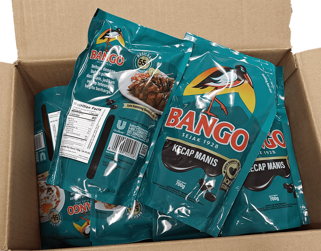 Purchase in case, 12 pouches/case, 700g Bango Sweet Soy Sauce- Bottle (12 packs x 700g)
