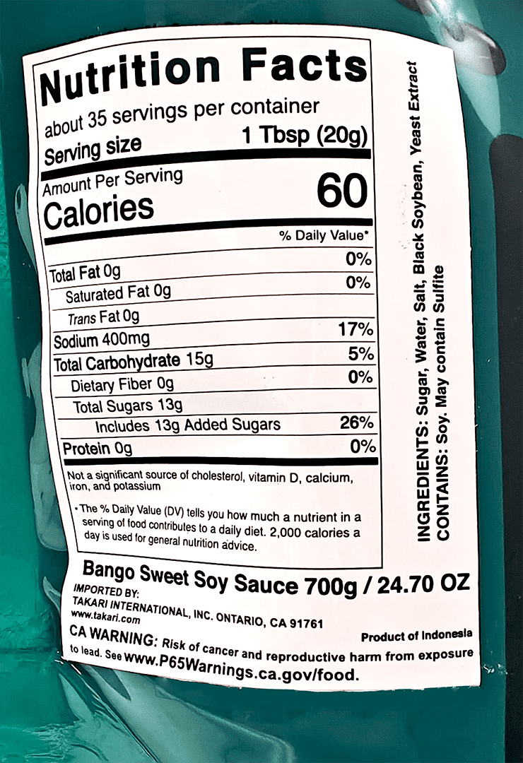 INGREDIENTS: Sugar, Water, Salt, Black Soybean Yeast Extract