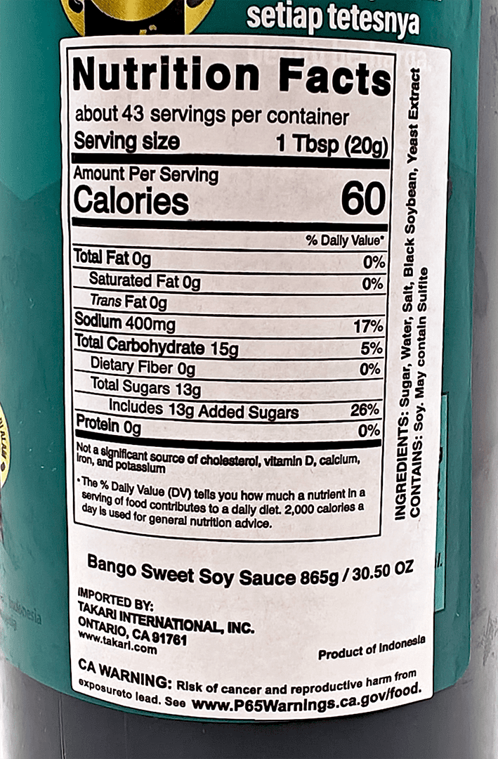 INGREDIENTS: Sugar, Water, Salt, Black Soybean Yeast Extract