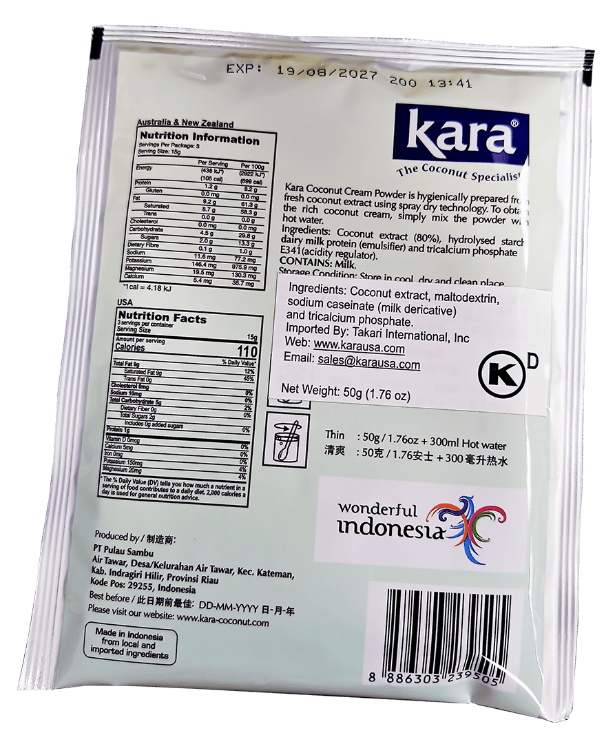 Kara Coconut Cream Powder – 12 display boxes/case, 12 packs/display box, 1.76 oz(50g)