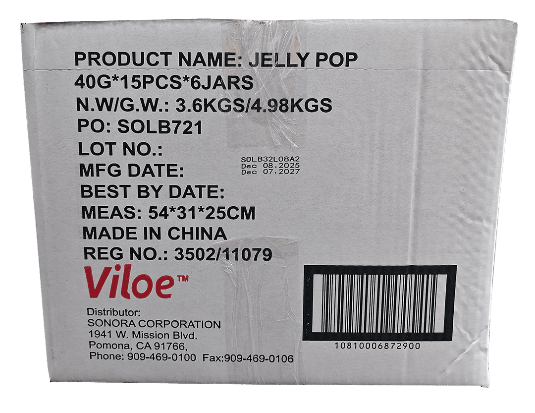 Purchase in case, 6 jars/case, Cat Jar- Viloe Fruit Jelly Pop 600g (21.16oz)