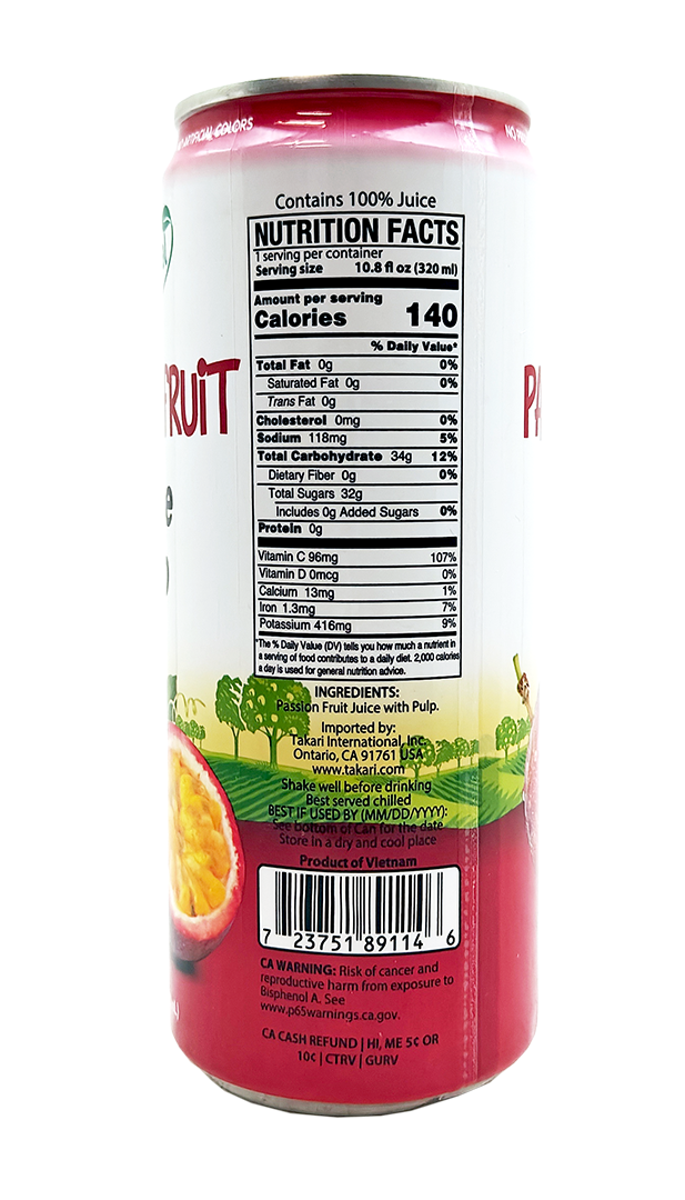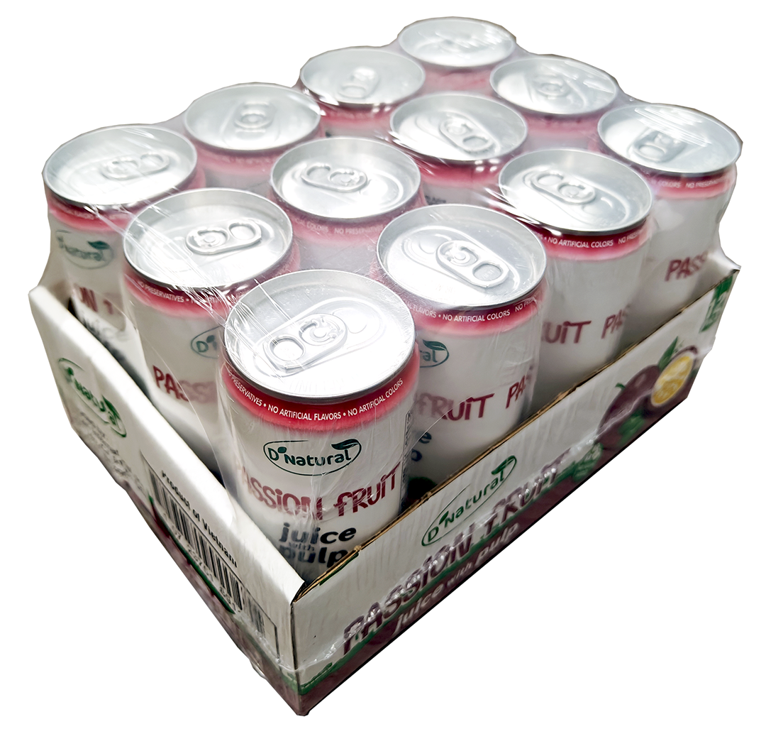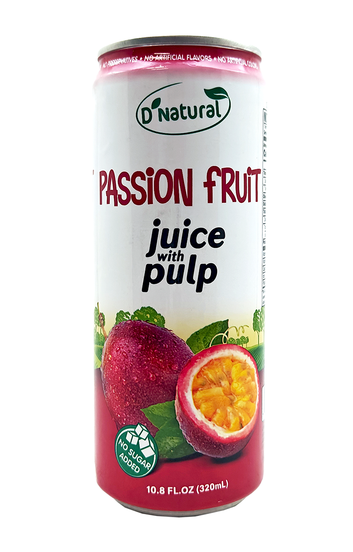 Purchase in case, 12 cans/case, D’NATURAL- Passion Fruit Juice w/ Pulp (12 cans x 10.8 oz)