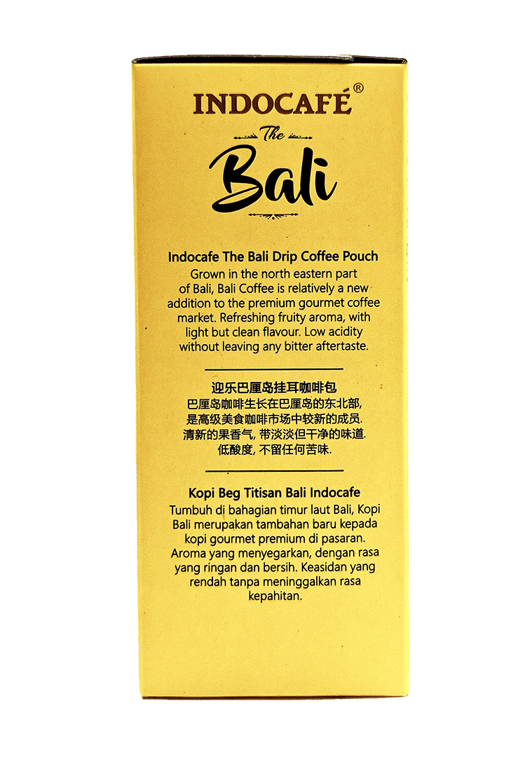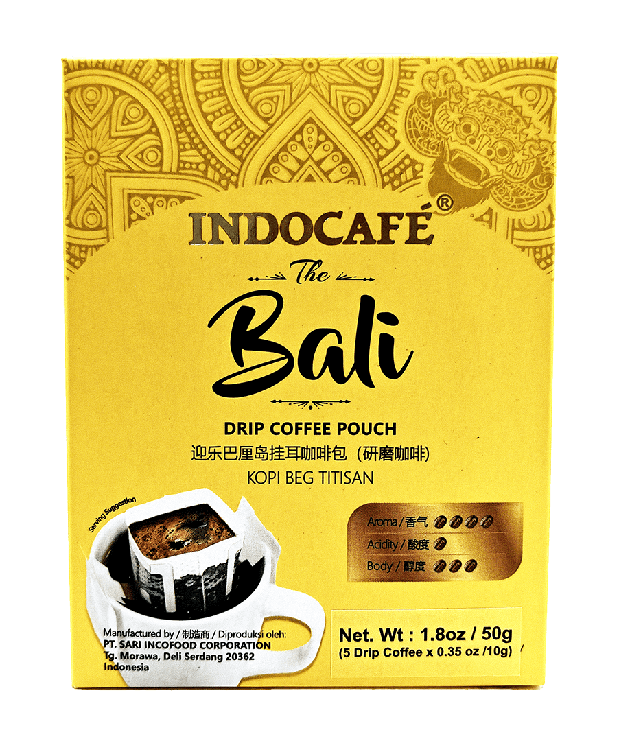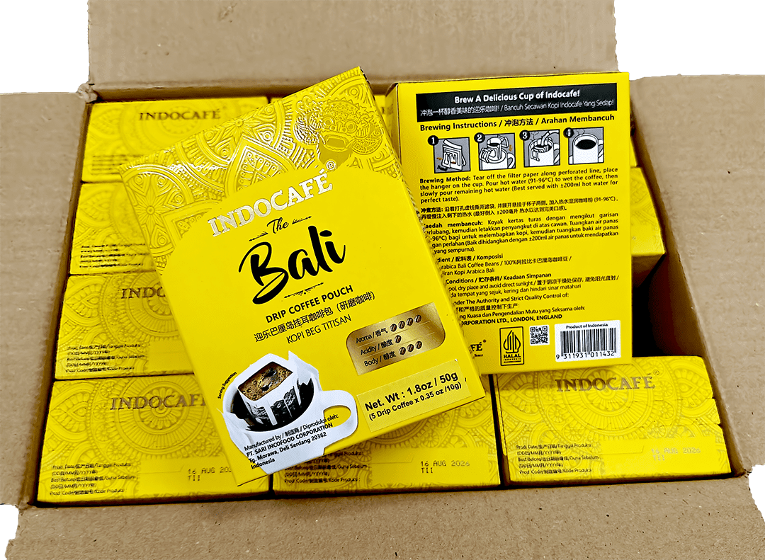 Purchase in case, 12 boxes/case, Indocafe Drip Coffee Pouch (The Bali) – (5 Pouches x 10g)